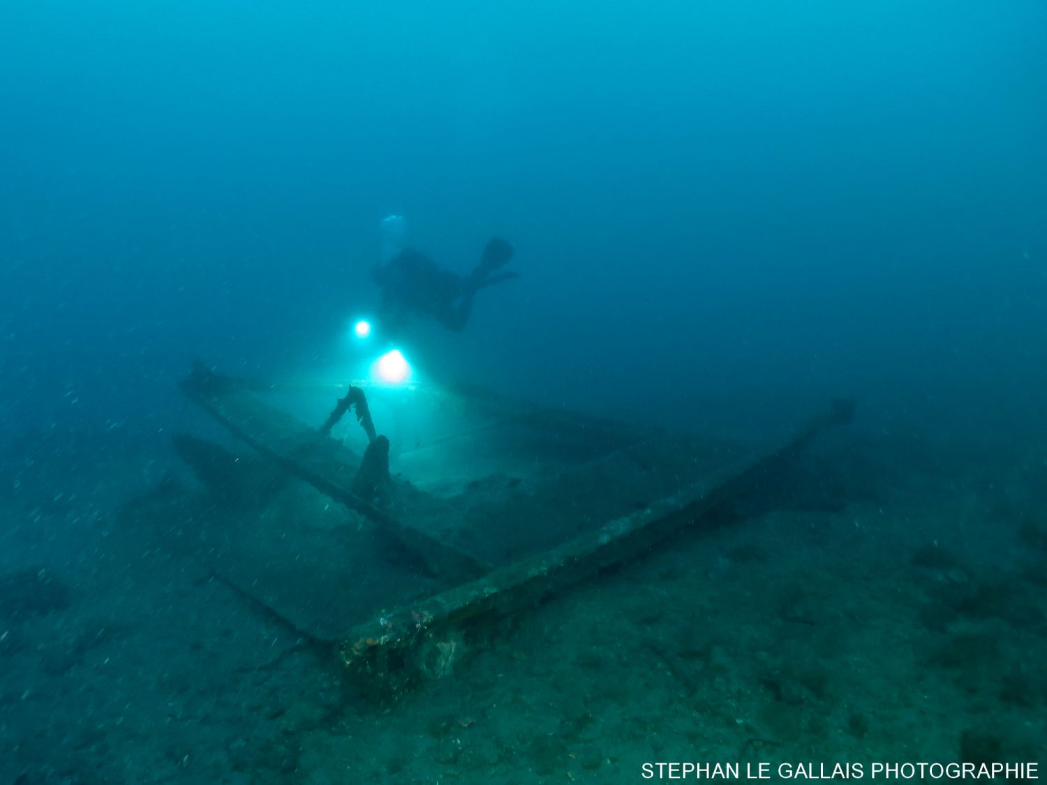 Un ami nous avez donné un point GPS, nous annonçant que le morceau de métal au fond était un flotteur d’hydravion. Après quelques passage au-dessus au sondeur, effectivement un objet se trouvait bien à l’endroit indiqué.