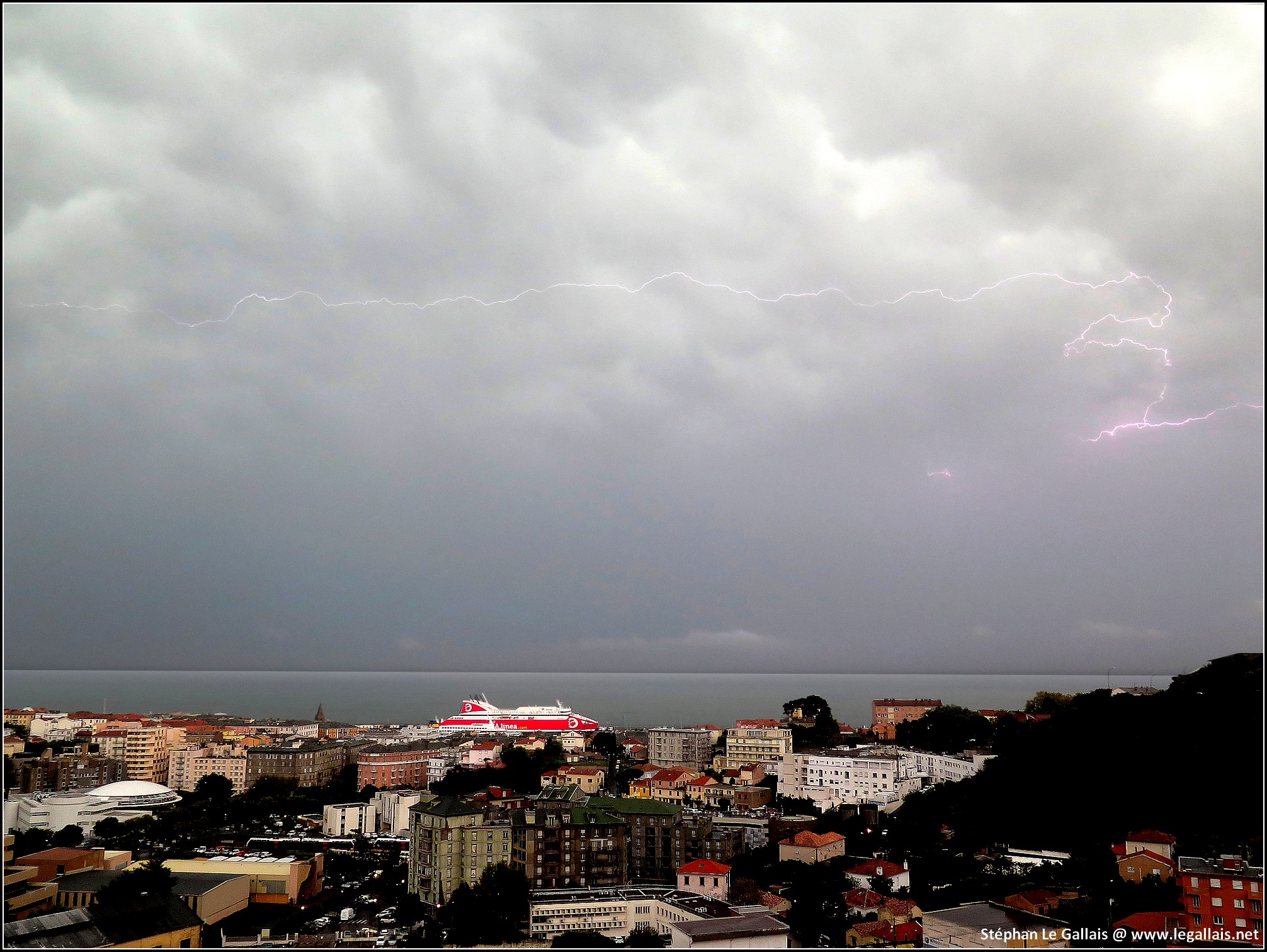 L’activité électrique était importante mais noyée dans les nuages et derrière les rideaux de pluie. Une petite accalmie m’aura permis de faire quelques photos, ce ne sont pas les photos du siècle mais elles ont le mérite d’être là.