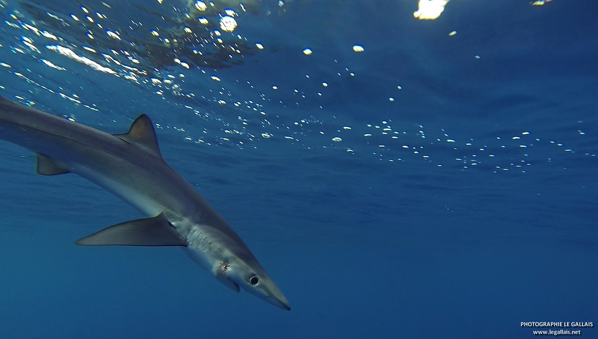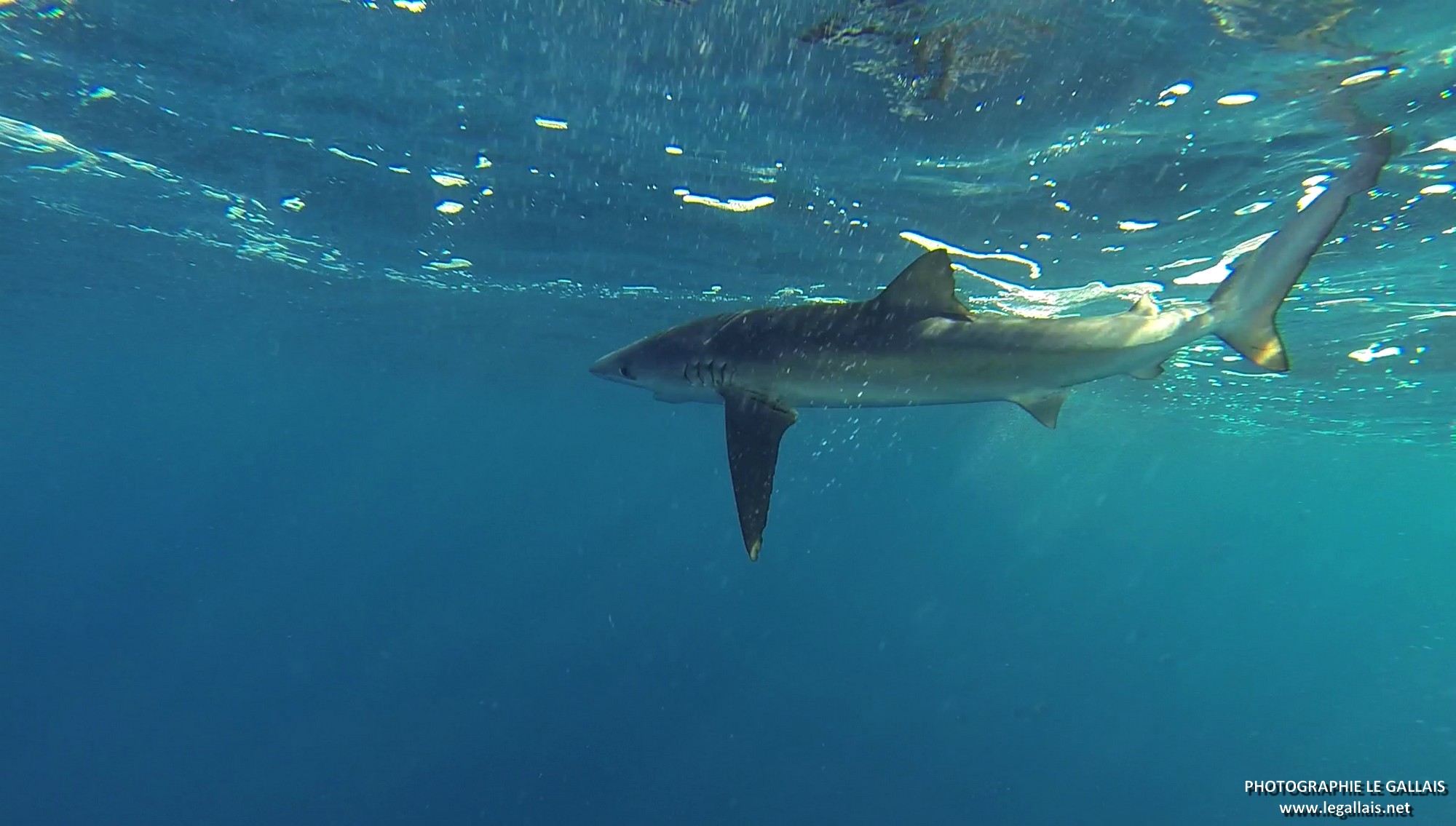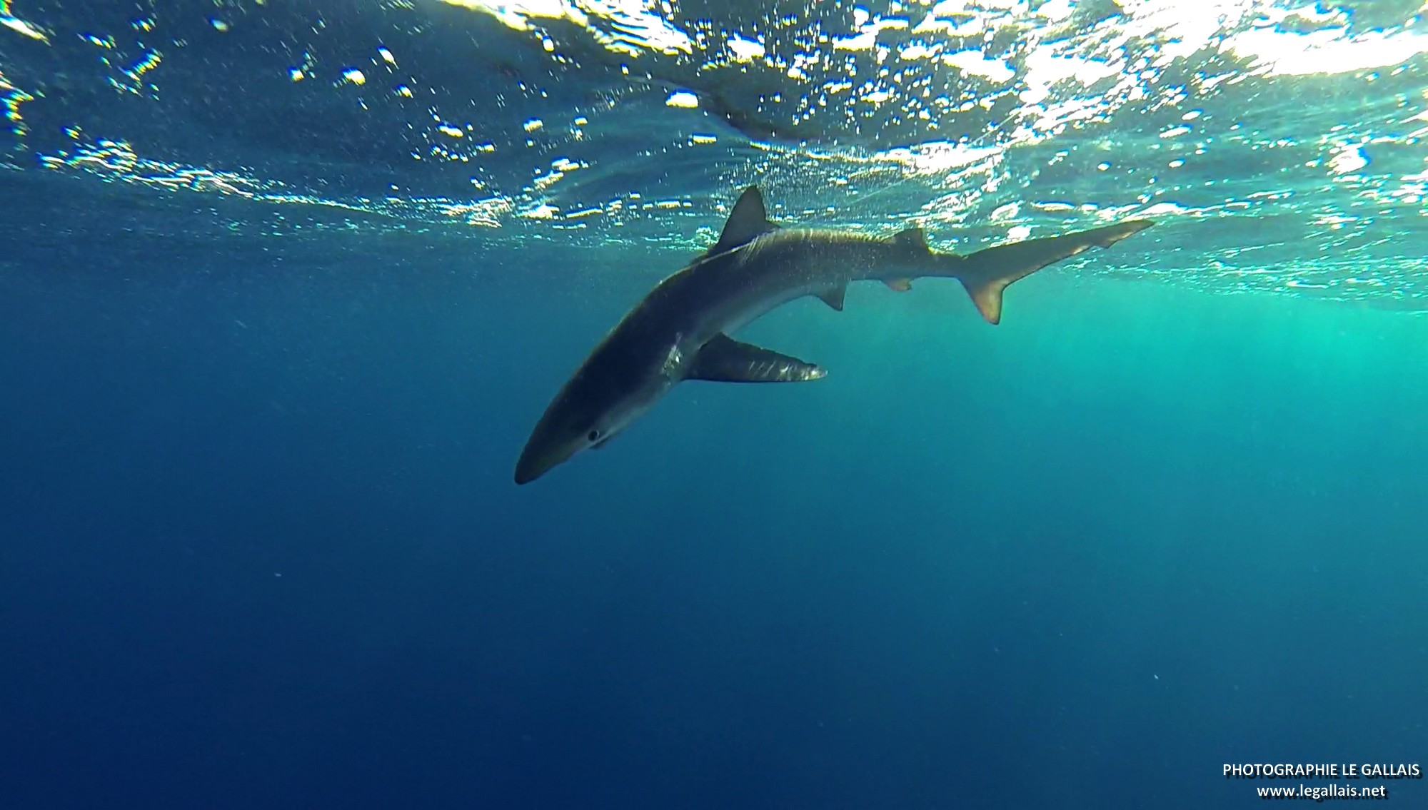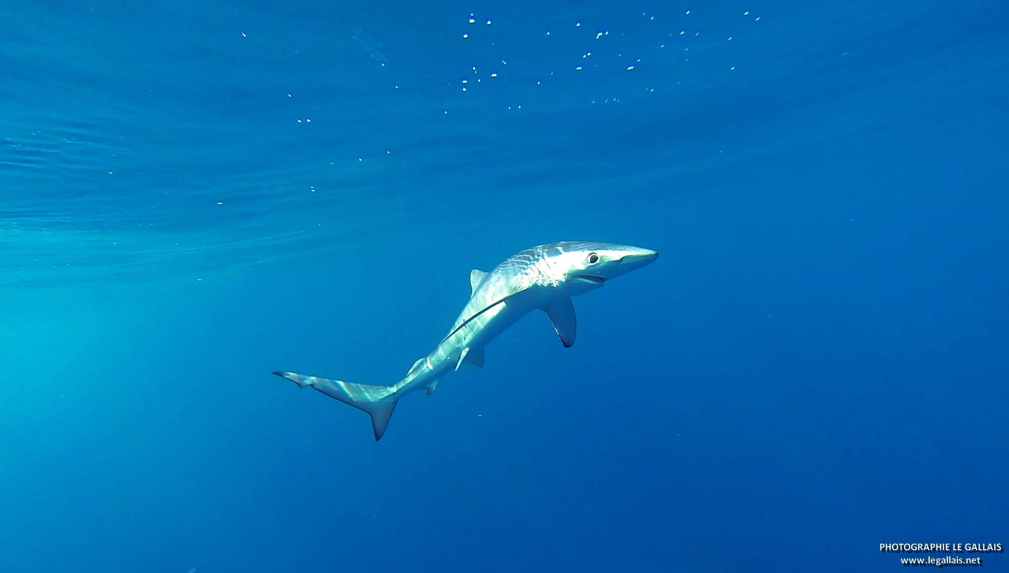 Requin Peau Bleu devant Bastia, d’un longueur d’environ 1.50 mètres il n’as pas voulu jouer avec l’appareil photo et donc reparti. Le requin bleu habite tous les océans et mers du monde dans des latitudes comprises entre 66° Nord à 55° Sud. Ce requin est pélagique mais peut occasionnellement rester à proximité de la ceinture continentale. De jeunes requins bleu sont parfois observés près des côtes. Il préfère les eaux entre 7 °C et 16 °C mais supporte bien les eaux légèrement au-dessus de 20 °C.