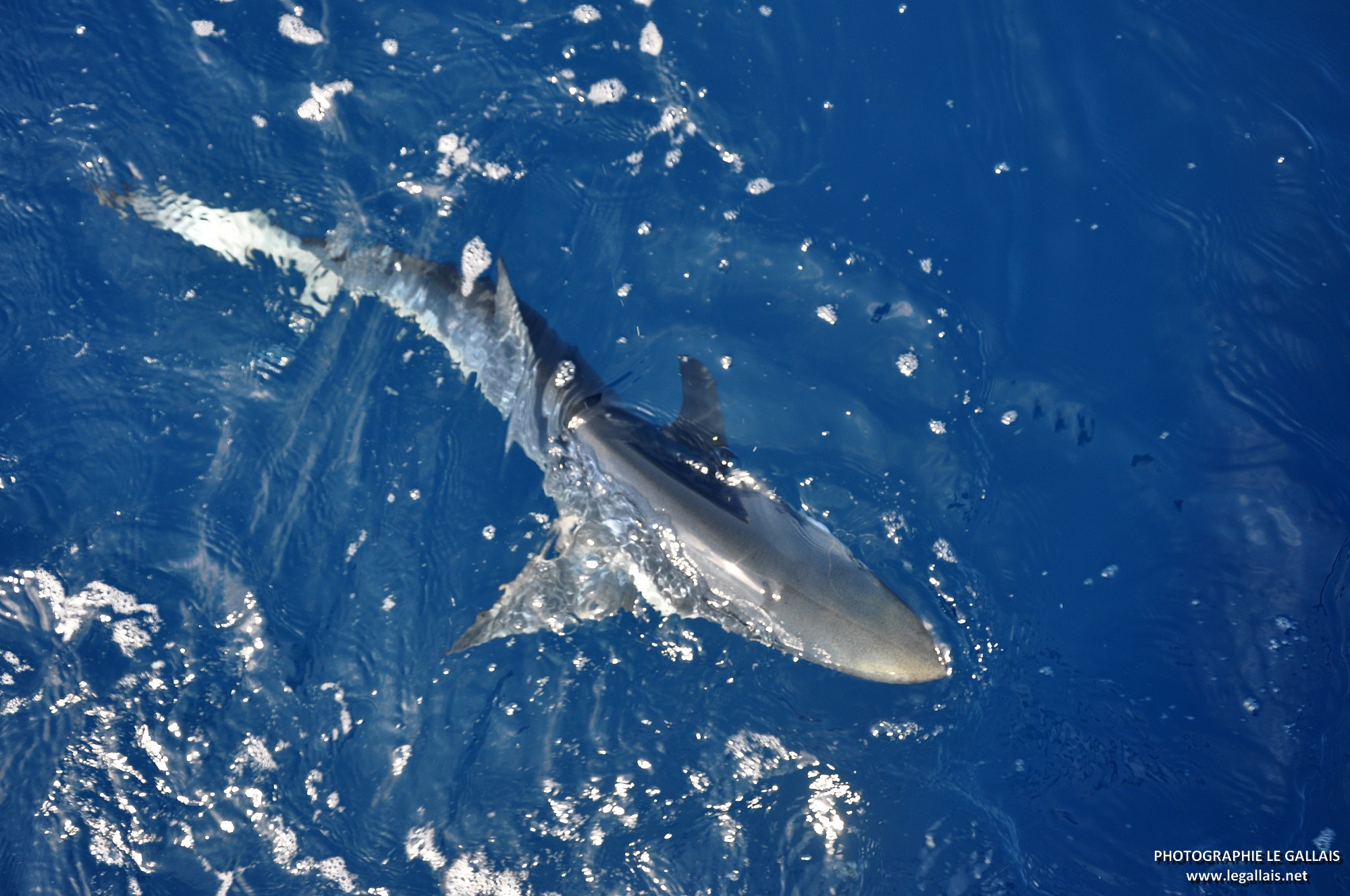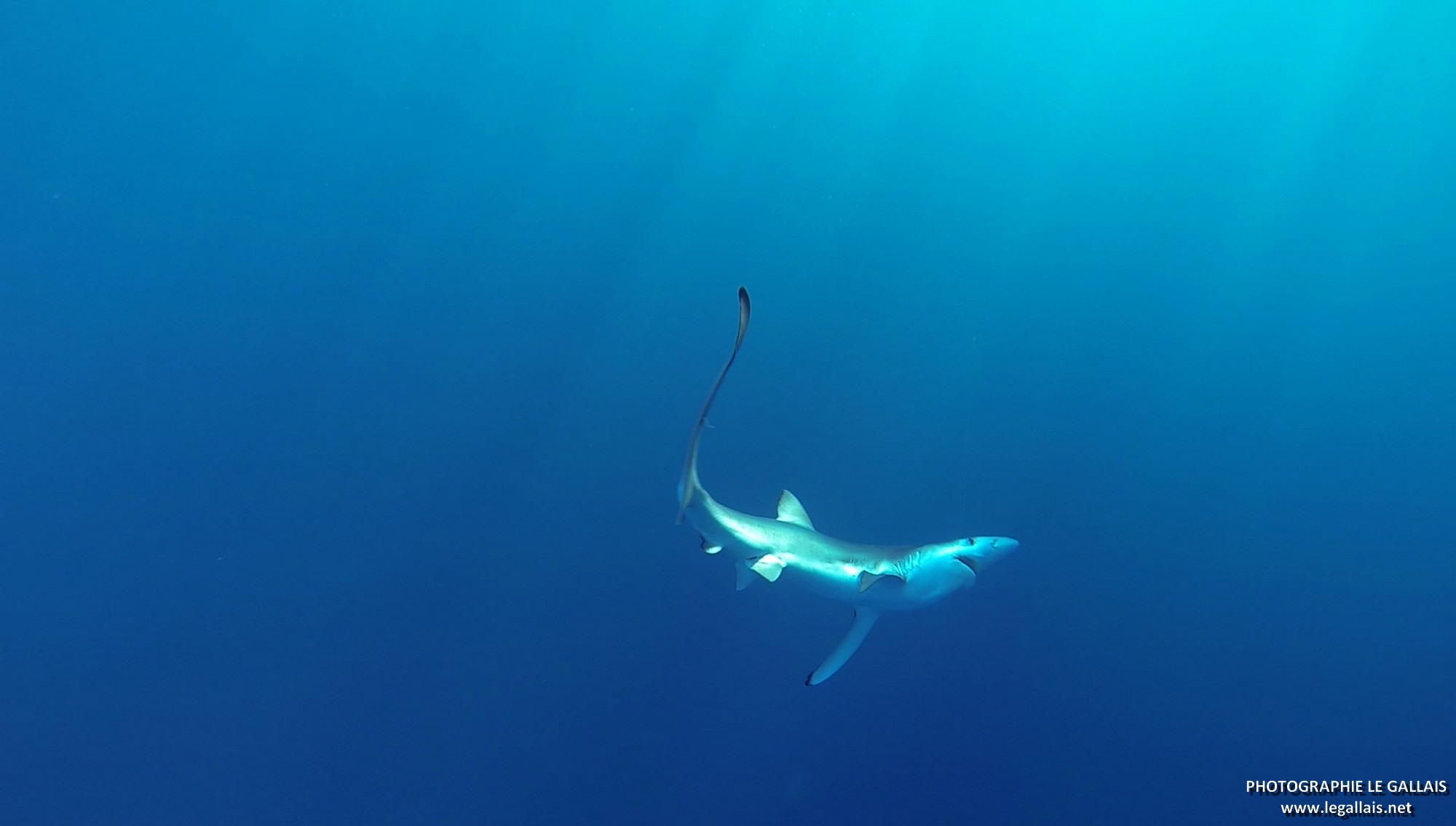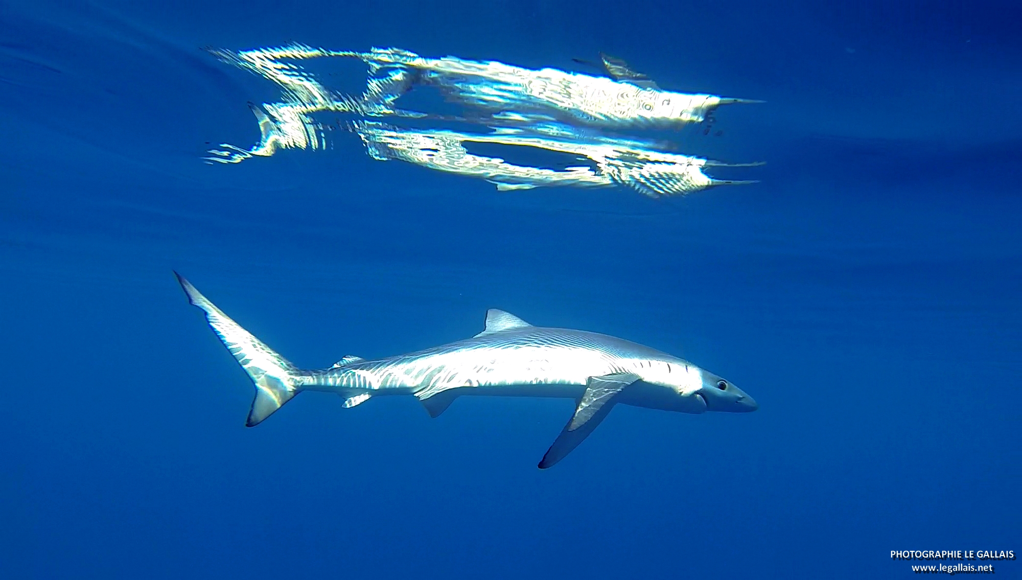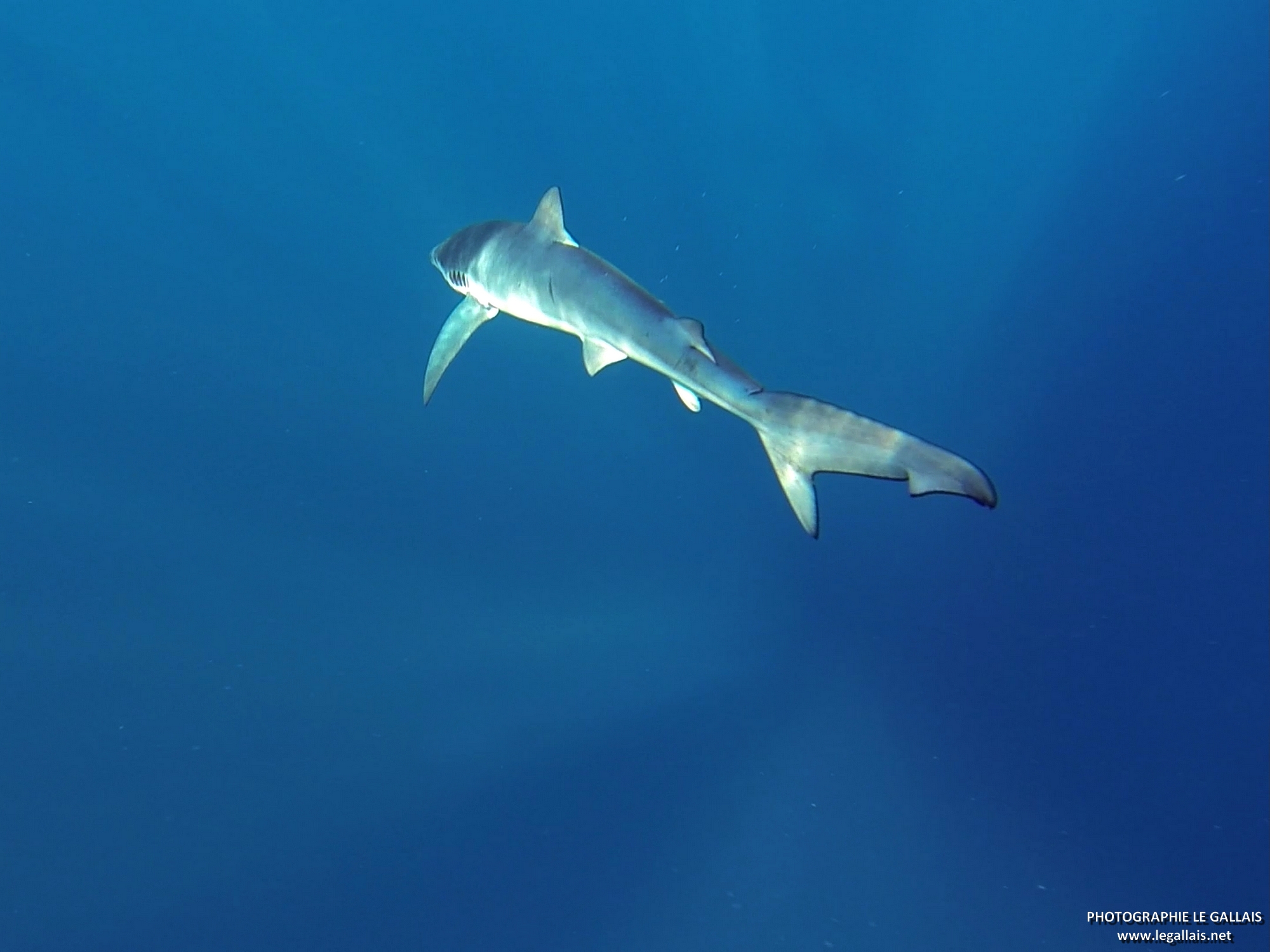 Requin Peau Bleu devant Bastia, d’un longueur d’environ 1.50 mètres il n’as pas voulu jouer avec l’appareil photo et donc reparti. Le requin bleu habite tous les océans et mers du monde dans des latitudes comprises entre 66° Nord à 55° Sud. Ce requin est pélagique mais peut occasionnellement rester à proximité de la ceinture continentale. De jeunes requins bleu sont parfois observés près des côtes. Il préfère les eaux entre 7 °C et 16 °C mais supporte bien les eaux légèrement au-dessus de 20 °C.