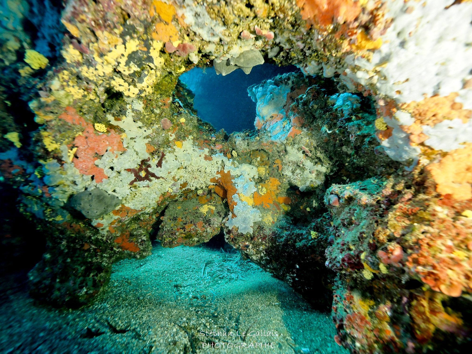 Situé au milieu d’une prairie de posidonies, un ensemble de roches percées de multiples cavités, vous permet de tester vos éclairages pour apercevoir la faune et la flore des lieux. L’architecture torturées de ce site vous laissent la liberté d’un parcours aléatoire.