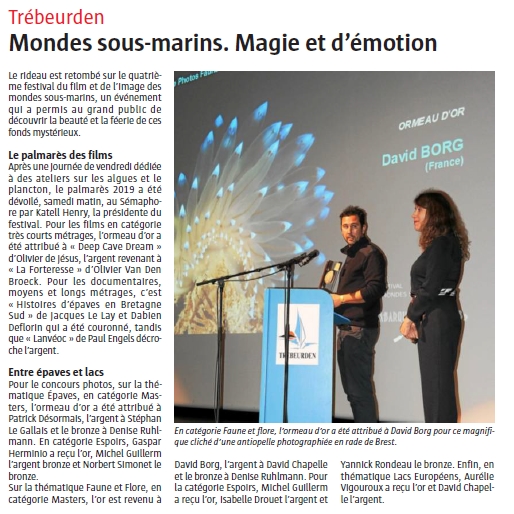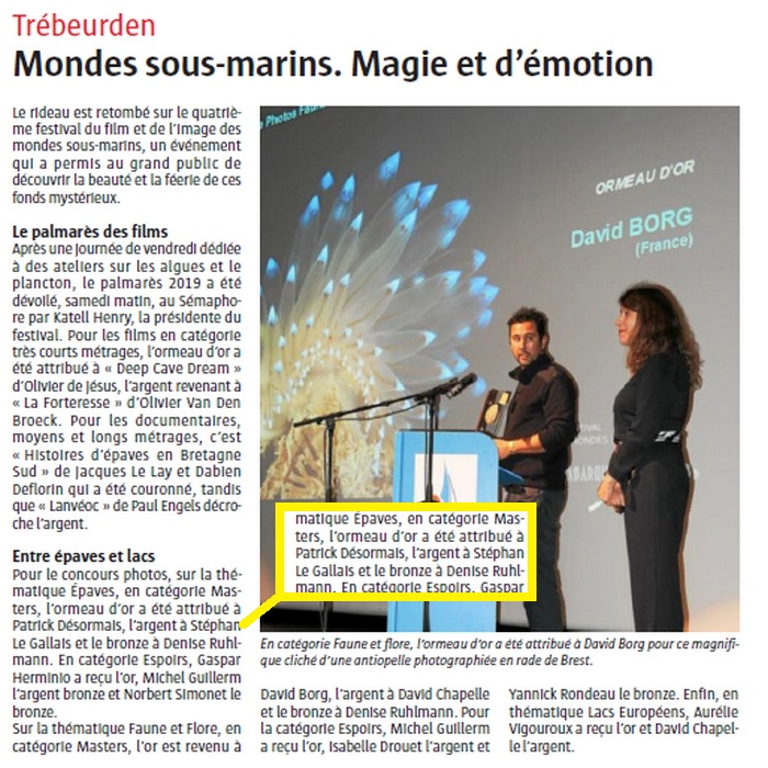 J’ai été médaillé d’Argent en catégorie Masters au festival International de l’Image Sous-Marine de Trebeurden. Un grand merci au Jury et son organisateur.