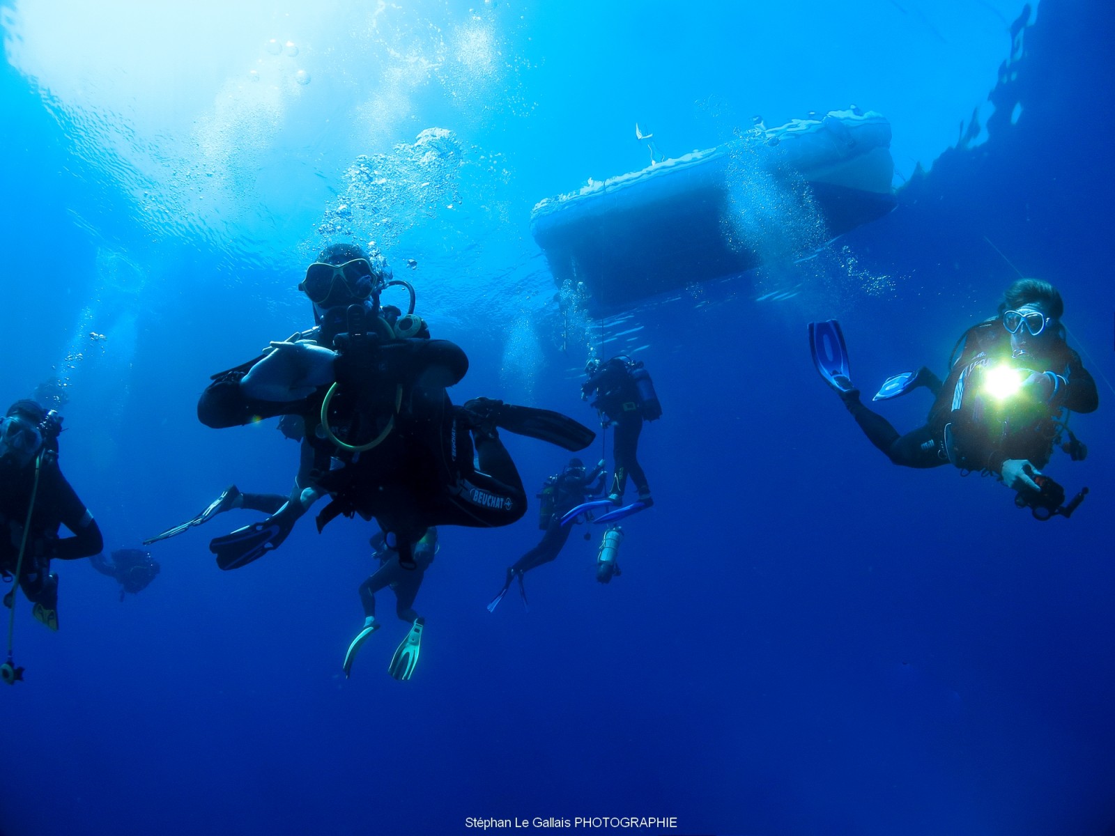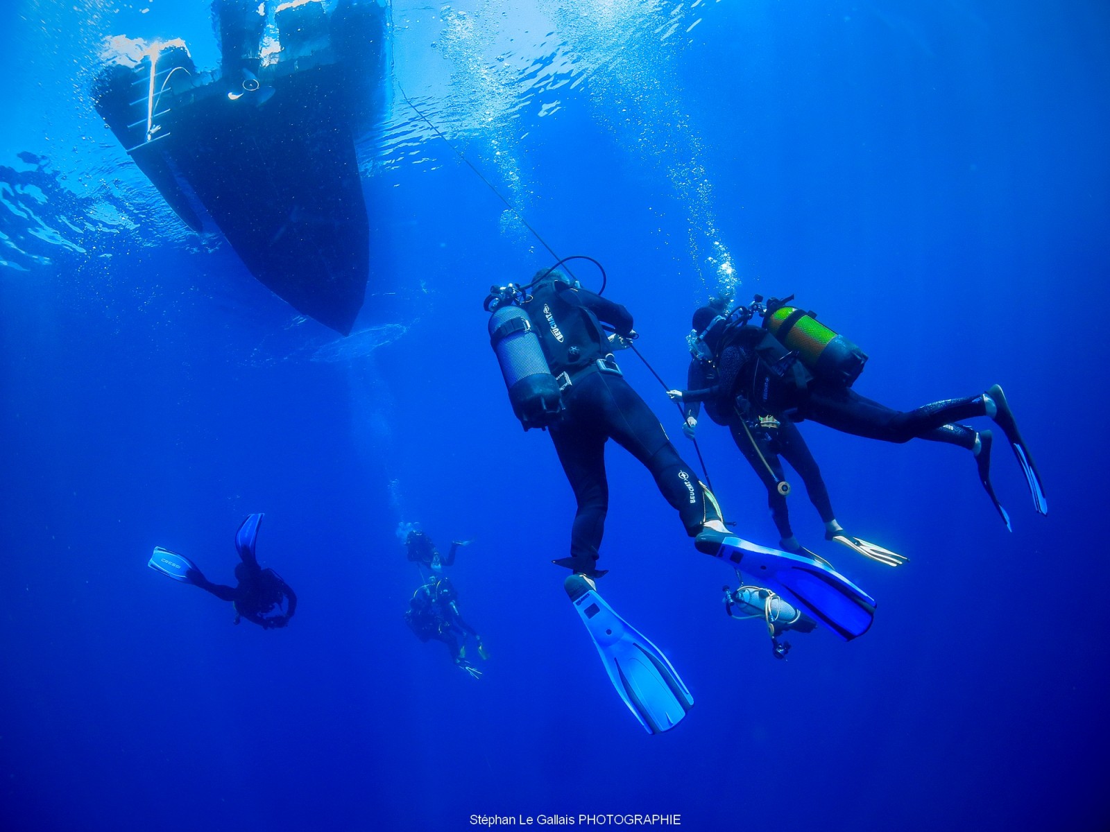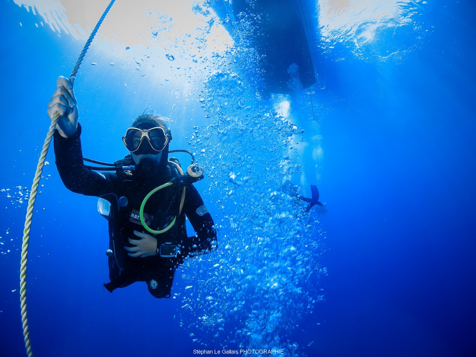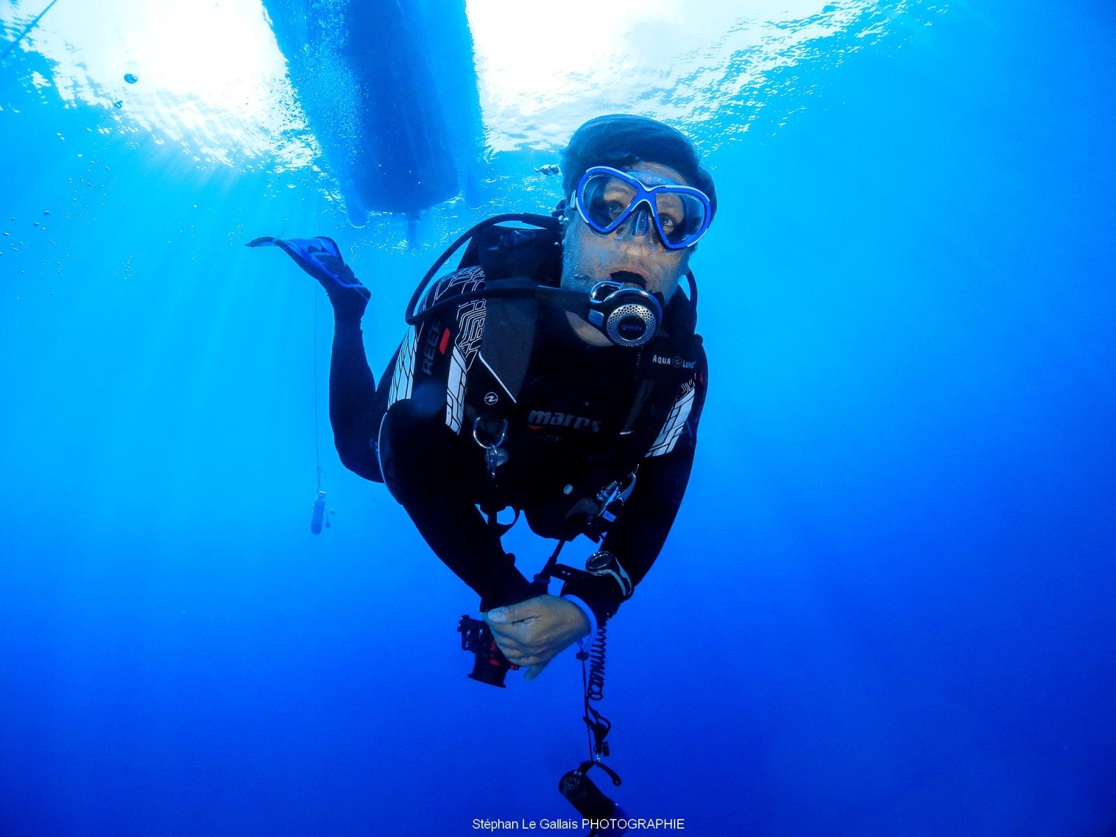 Après une belle plongée sur une épave, comment occuper son temps aux paliers ?, tout simplement s’amuser à shooter des plongeurs, et travailler sur les paramètres de son appareil photo. Il est possible de travailler sur l’ouverture, la vitesse et du coup de donner de belles photos.