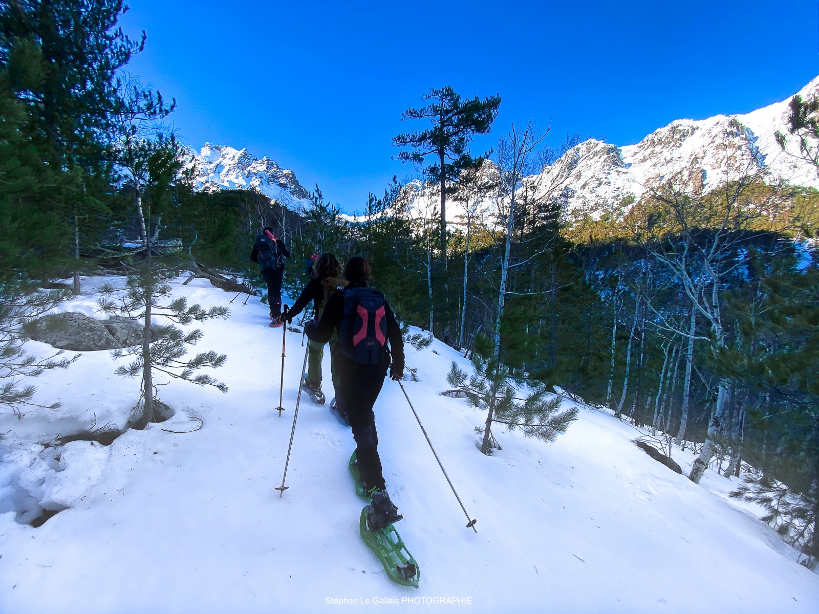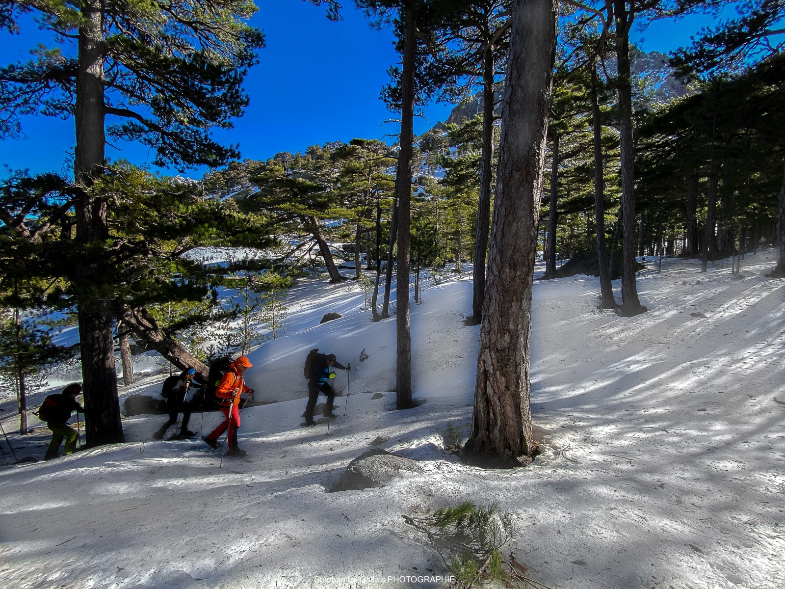 La neige commence à se détériorer, et j’ai profité mercredi d’une dernière sortie en raquette du coté d’Asco avec un groupe et des moniteurs. La neige était parfois dur comme du granit et sous les bois, c’était un peu de la soupe mais encore praticable. Il faudra attendre qu’il re neige pour les prochaines sorties en raquettes. La lumière était magnifique et le décor grandiose, nous avons croisé aussi quelques mouflons mais relativement farouches.