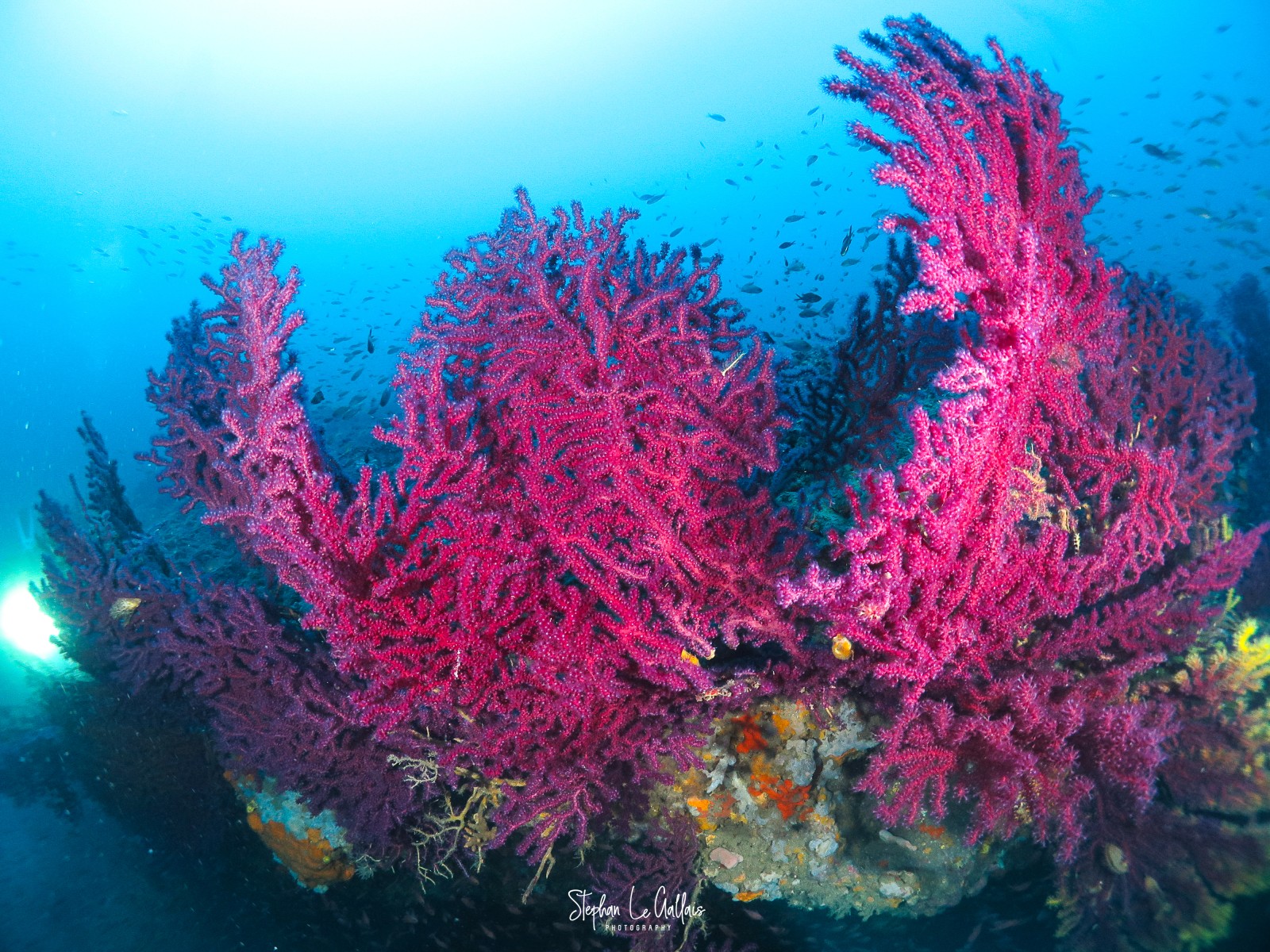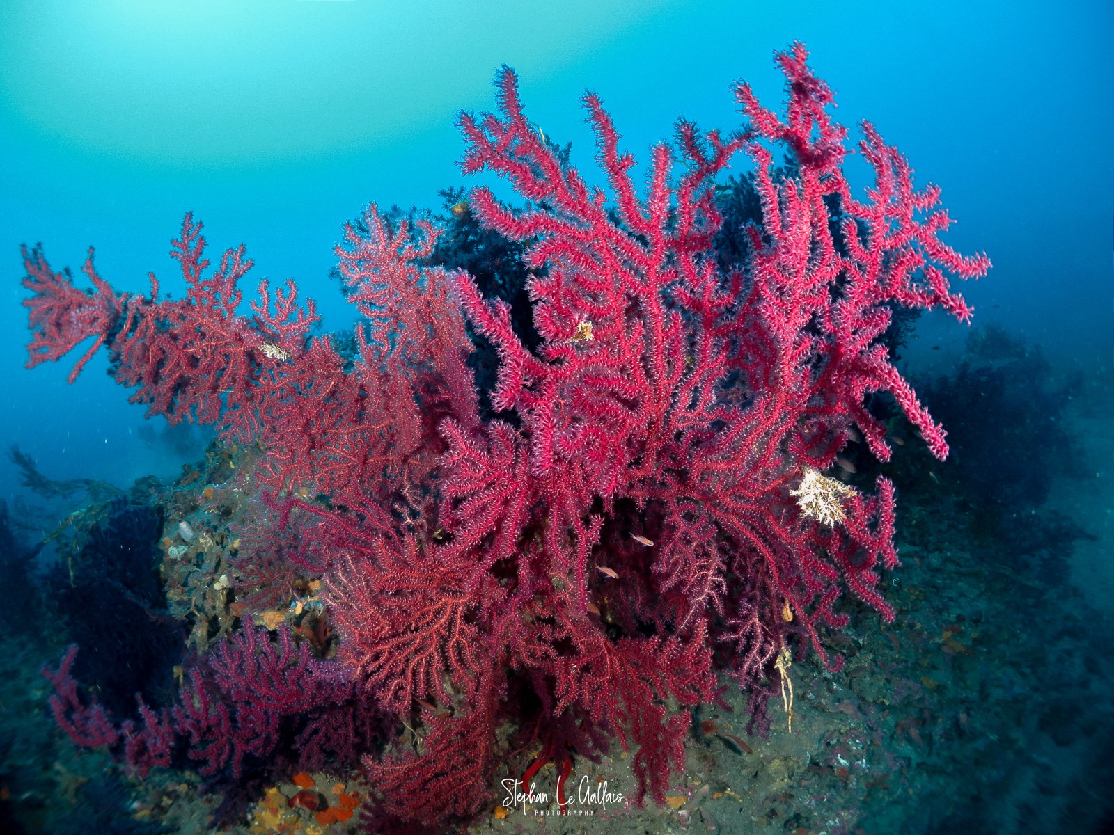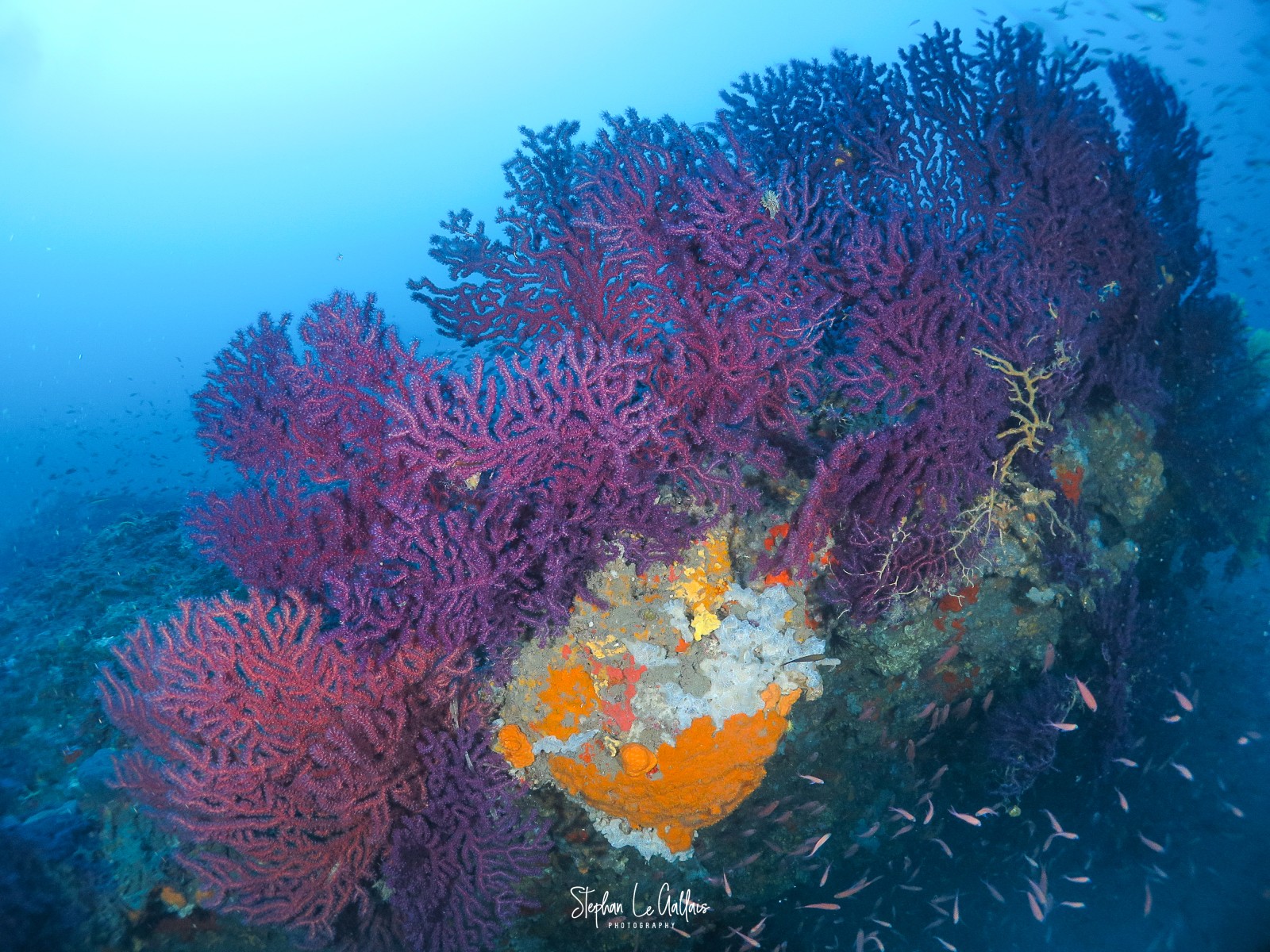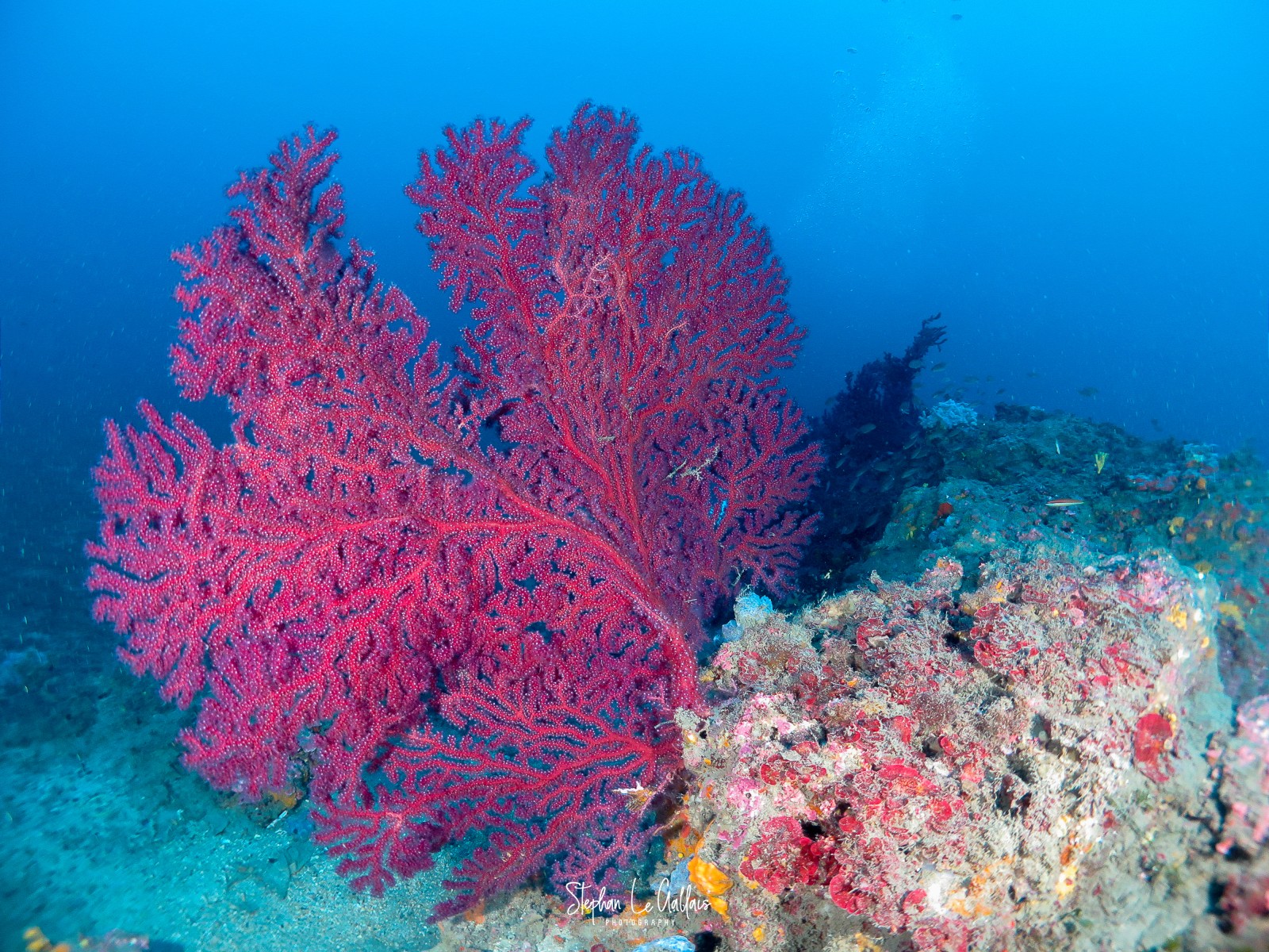 Toujours un réel plaisir de plonger sur cette roche devant le port de commerce de Bastia. Elle est couverte en partie de gorgones pourpre et mimosa (bout jaune). Chaque année les gorgones sont différentes, ou plutôt en fonction des saisons, on a l’impression qu’elles se meurent et puis l’hiver, elles reprennent force et vigueur. Cette sortie était organisé par Toga Plongée.