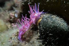 Plongée de reprise ce matin pour 2024, température extérieur de 9° et l’eau est à 15°. le site de « Poisson Lune » avec une descente dans le vert et très peu de visibilité. Nous avons exploré les roches à la recherches de nudibranches. Une surprise de trouver une nacre juvénile (Pinna Nobilis ?), beaucoup de grandes nacres mortes autour.