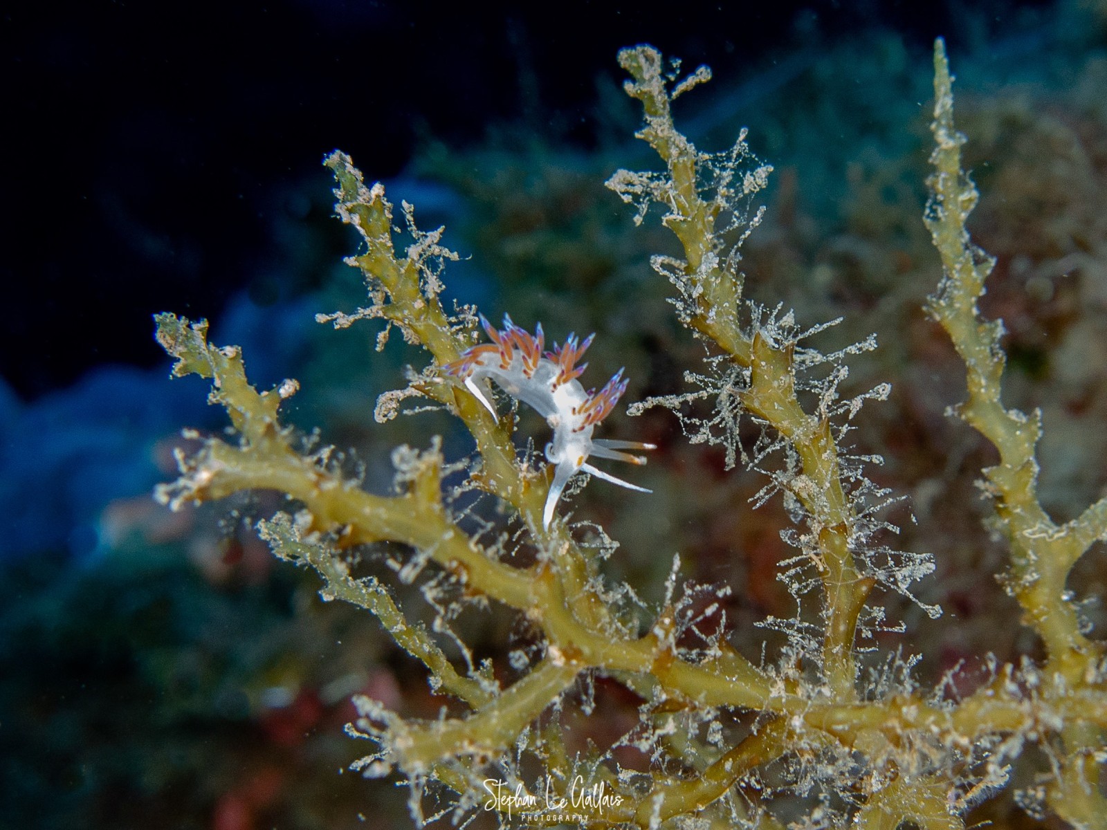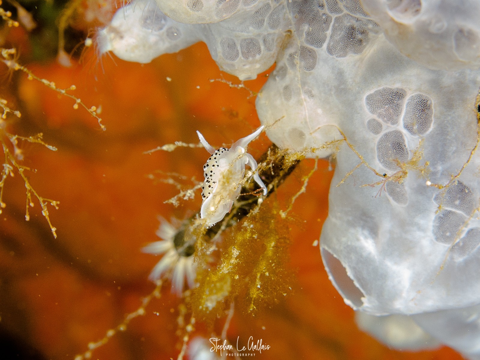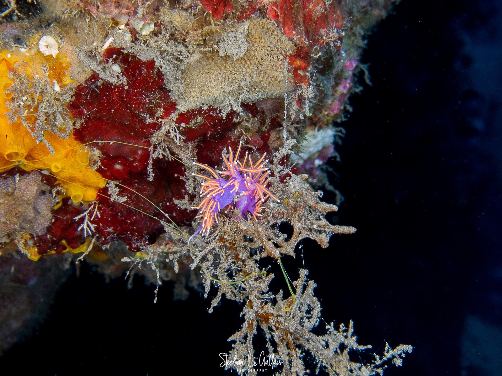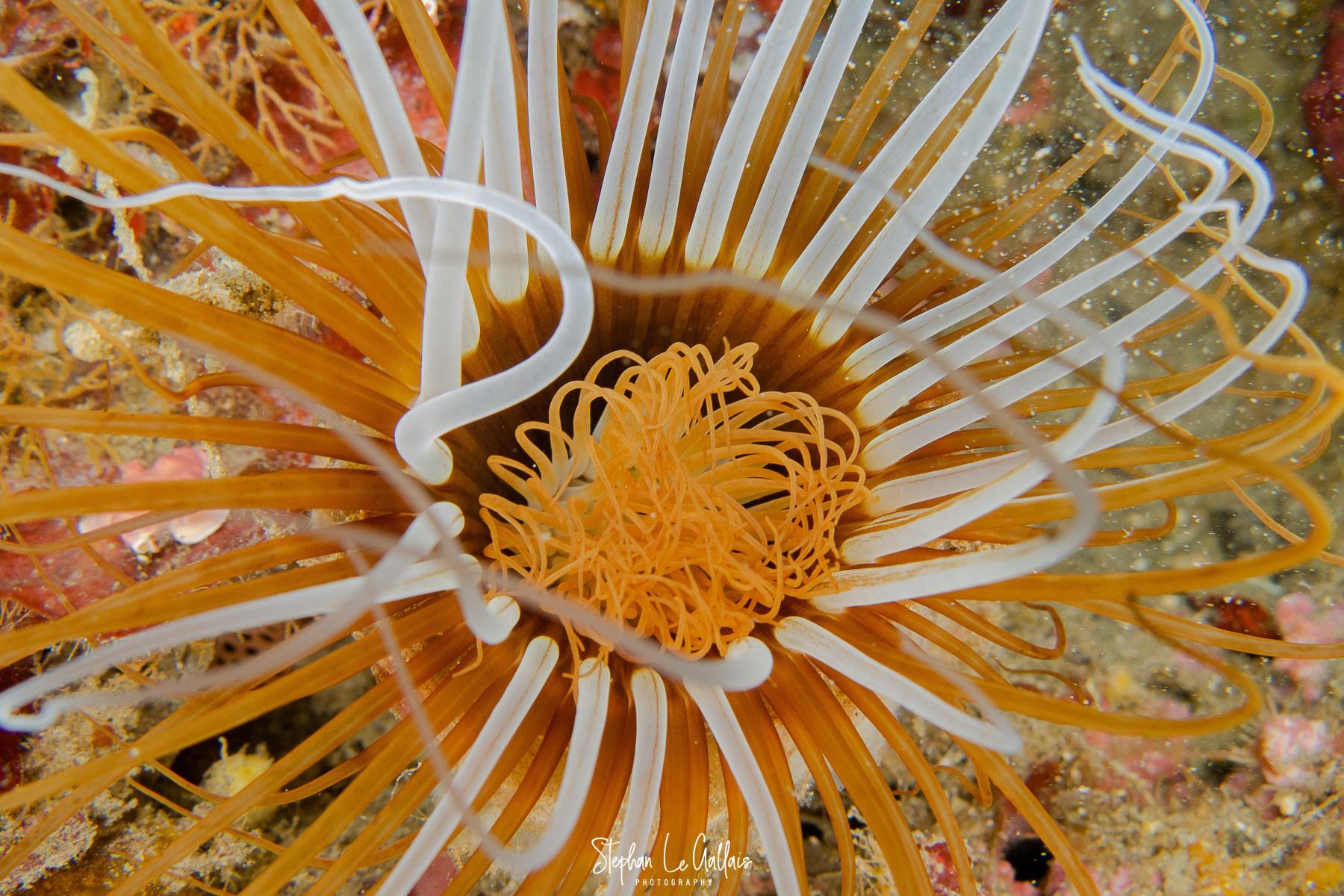 Les limaces étaient bien au rendez-vous, même si leur taille restait modeste, de l’ordre du centimètre — il fallait garder l’œil attentif pour ne pas les manquer. Deux cérianthes, aux couleurs différentes, se tenaient côte à côte, formant un véritable bouquet de fleurs sous-marin.
